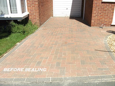 A comparison of block paving before and after sealing is shown in the picture above. There are a variety of sealants available and we will recommend the most suitable, which is chosen on the basis of economy and the wear characteristics needed in the expected use of the surface being treated.